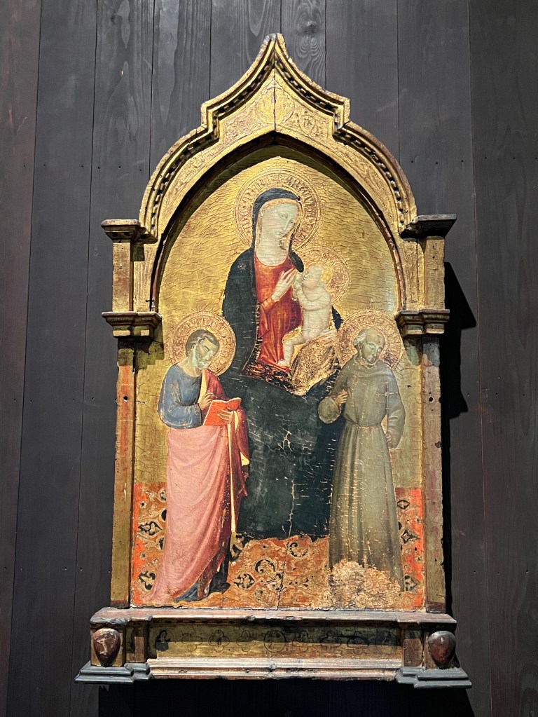 A Madonna with exposed breast, “Virgo Lactans”, is a theme in religious painting popular across Christendom between the 12th and 16th centuries meant to illustrate Christ’s humanity and Mary’s humility. They can also be quite personal and intimate. There is very little nudity depicted in the Victorian and Edwardian era galleries of the ISGM (relatively few draped ancients, studies, mythological themes, and in the case of Zorn’s “Morning Toilet” – even with private areas temporarily painted over!); the Mother of God’s bosom seems a special case.